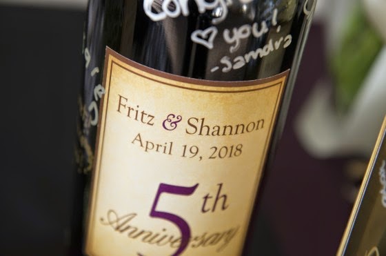 Guests were welcomed into the main gate area with a signable set of wine bottles - each with a number depicting anniversary dates on which Shannon and Fritz would open and share.